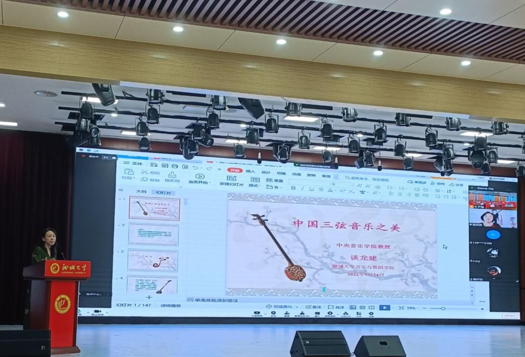 5月24日下午,由校团委主办、音乐与舞蹈学院承办的“博雅大讲堂”第17期在辰晖楼三楼报告厅举行,中央音乐学院资深教授、博士生导师谈龙建作题为《中国三弦之美》的专题讲座。