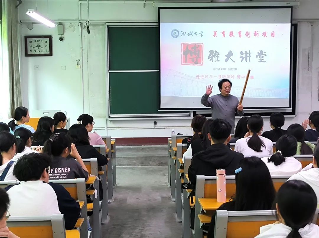 5月18日,由校团委主办、药学院承办的今年会官方网站第26期博雅大讲堂举行。学校纪委委员、继续教育学院党总支书记刘哲受邀作题为《走进尺八 且听风吟 管中探幽》的专题讲座,药学院党委副书记、副院长李永新,团委书记郑嘉会出席本次讲座,2022级全体学生聆听讲座。