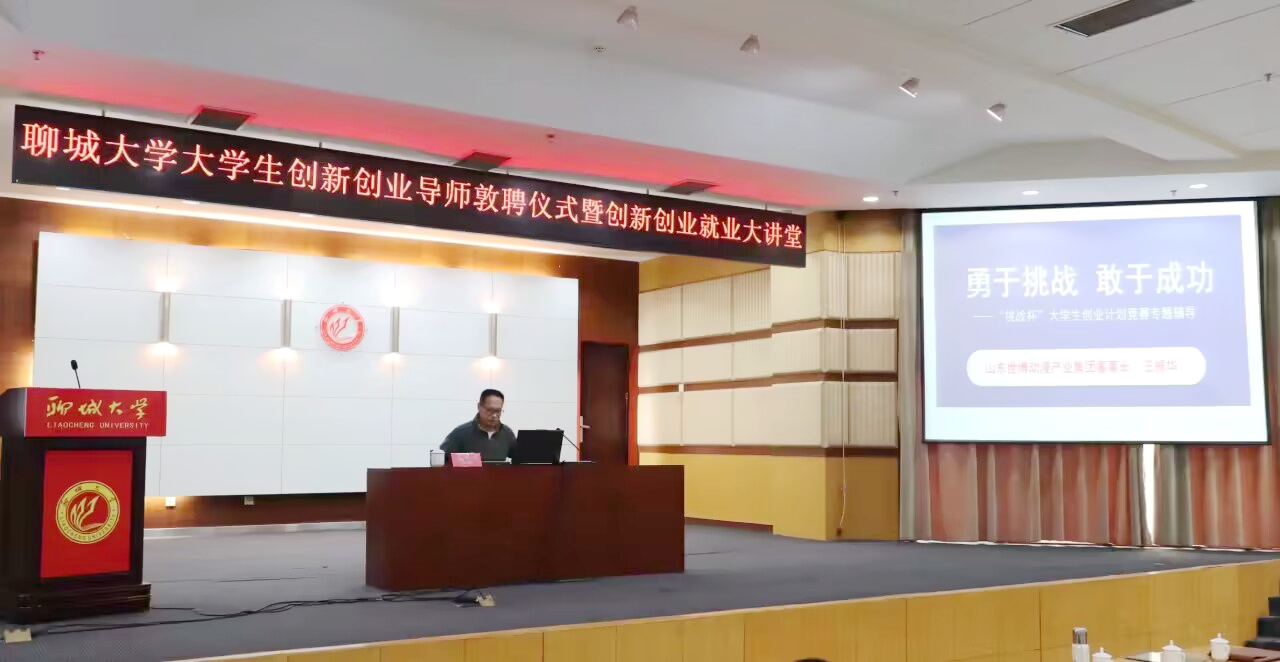 仪式后,王振华作《勇于挑战 敢于成功》报告,就“挑战杯”中国大学生创业计划竞赛有关事宜对师生进行专题辅导,从参赛资格、团队组建、项目选题、打磨提升、作品申报、参赛步骤、注意事项等进行了全面讲解。他指出,“挑战杯”大学生创业计划竞赛注重市场与技术服务的结合,考察项目商业性与商业嗅觉,可落地、有市场、前景广、竞争力强是好的项目的基本要素。选题要关注事实,从细致社会观察、市场调研和社会实践中发现问题、思考问题、解决问题,从小切口讲出大道理,创造实用、美观有商业价值的产品。商业计划书要涵盖社会价值、实践过程、创新意义、发展前景和团队合作等内容,重点突出实践过程。王振华结合自身经历分享了泰山领军人才答辩过程,建议同学们提前对问辩环节进行策划,理清项目底层逻辑,简明扼要突出项目重点。