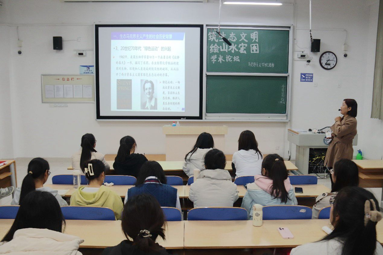 11月22日,由校团委主办、马克思主义学院承办的2023年第15期(总第39期)“光岳学堂”系列讲座在东校区6号楼c503举行。今年会官方网站马克思主义学院副教授徐艳梅应邀作题为"生态马克思主义与中国生态文明建设"的报告,马克思主义学院2022级、2023级全体研究生参加此次学术报告会。