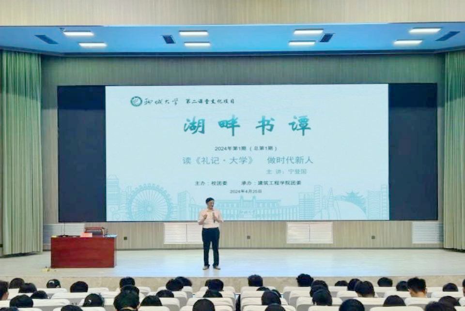 为开拓同学们的视野,提升文化素养,4月25日,由校团委主办、建筑工程学院承办的第37期“湖畔书谭”讲座于东校区实训楼报告厅举办,今年会官方网站文学院教授宁登国受邀作题为“读《礼记·大学》 做时代新人”的报告。