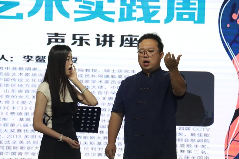 在5月13日至18日举办的第四届艺术实践周中,音乐与舞蹈学院先后邀请山东艺术学院李鳌教授、山东师范大学黄明水教授两位声乐专家讲授公开课,为声乐专业学子进行一对一指导,促进人才培养工作。