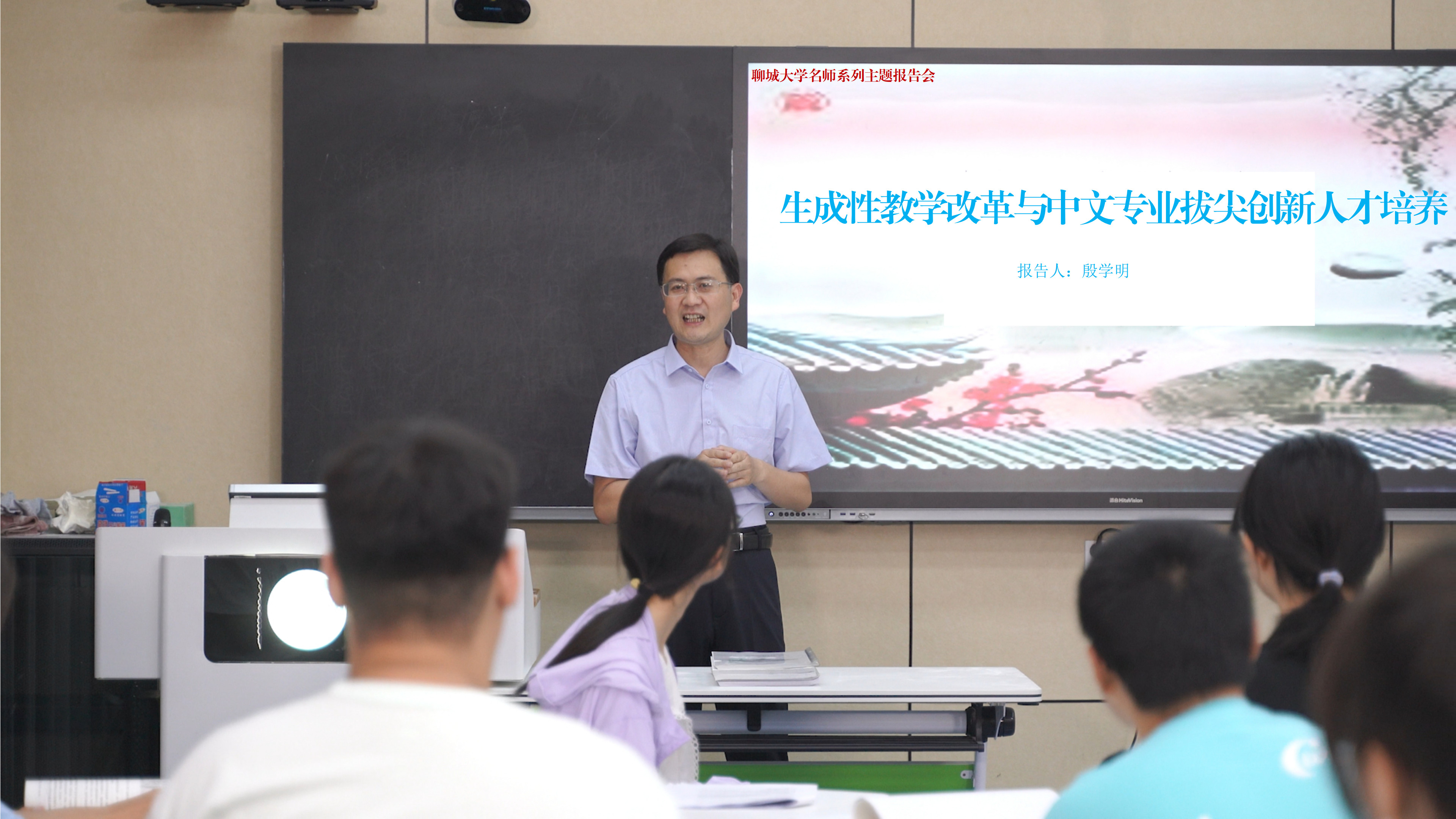为展示名师风采,赓续聊大精神,献礼五秩风华,6月6日下午,文学院教授殷学明应邀参加今年会官方网站名师系列主题报告会活动,于西校区3#c203智慧教室作了题为《生成性教学改革与中文专业拔尖创新人才培养》报告,文学院研究生聆听了报告。