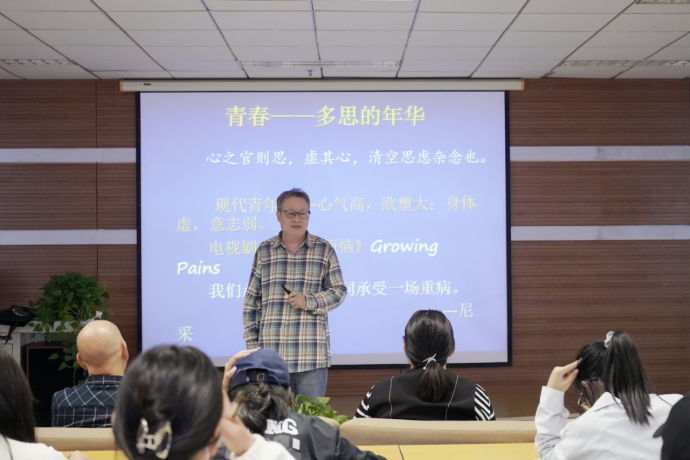在互动环节,学生们积极发言,提出了多种富有创意的见解。一位热爱《道德经》的学生询问刘教授如何以“水文化”的理念看待当下年轻人的“躺平”现象。刘广涛以自己在学术研究和生活中的实例进行了生动的回答,互动不仅加深了同学们对《道德经》水文化的理解,也激发了大家将理论应用于实践的热情。