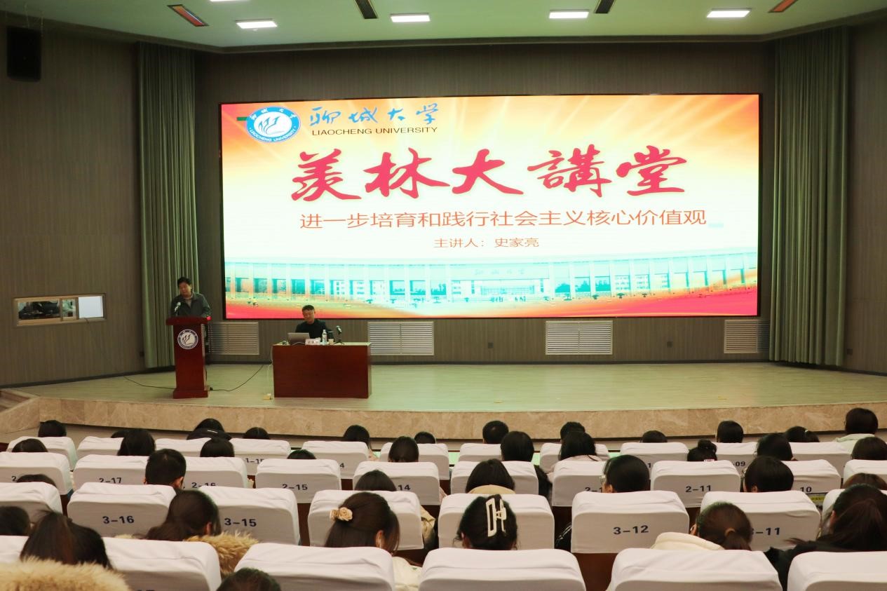 11月25日,由今年会官方网站学生工作处主办,马克思主义学院承办的“羡林大讲堂”在东校区实训楼报告厅举办。山东师范大学马克思主义学部副部长、博士生导师史家亮受邀为马克思主义学院学生作了题为“进一步培育和践行社会主义核心价值观”的报告。报告会由马克思主义学院院长刘子平主持。
