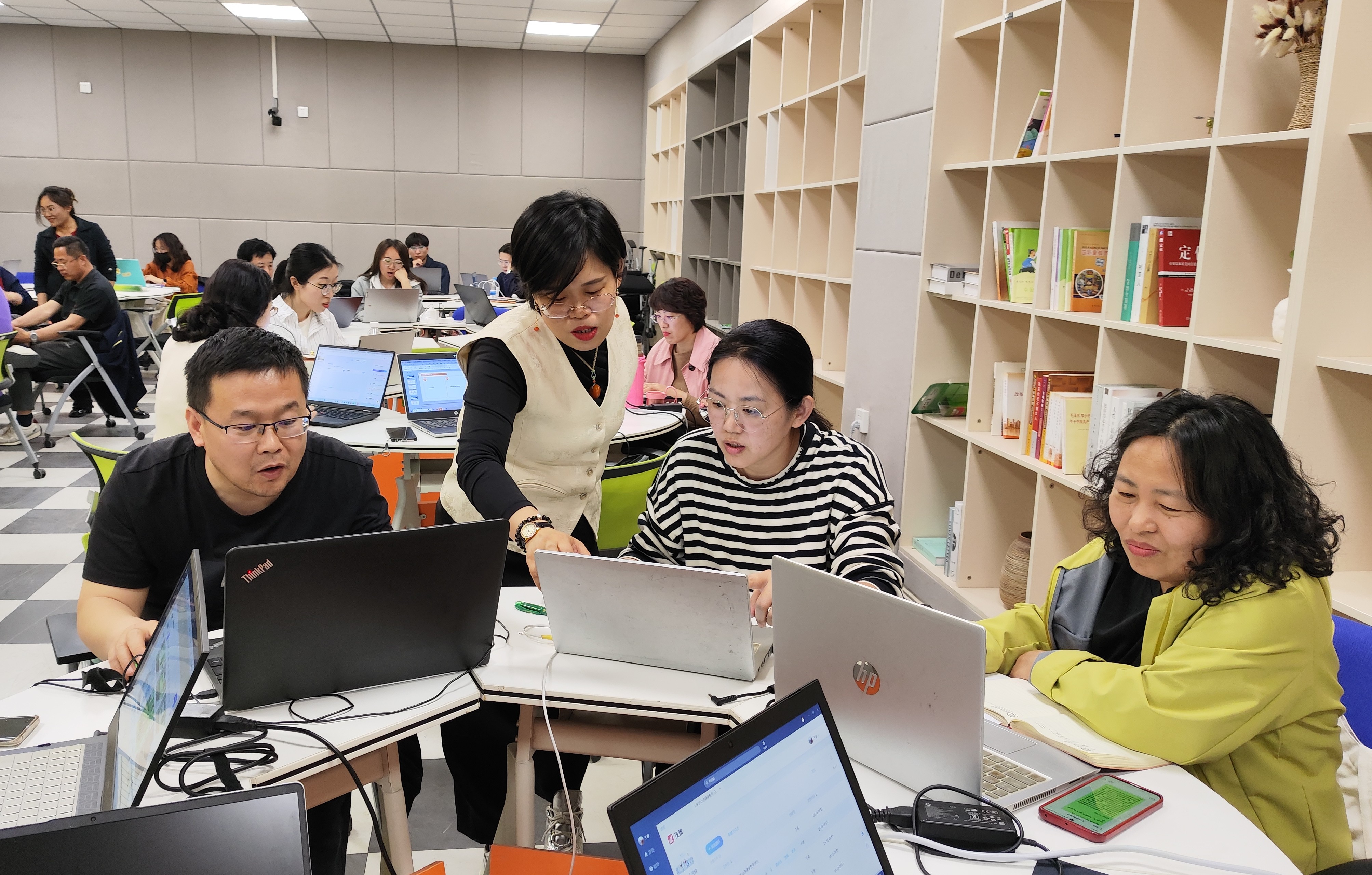 上午的工作坊以“AI智能体应用实操”为主题,分为“智慧教学环境构建”“AI教学应用实践”两大模块。赵玉霞系统解读了AI智能体在教育领域的应用框架,强调“技术赋能不是颠覆传统,而是重构教学流程”。她指出,通过DeepSeek大模型构建课程专属智能体,可实现教学资源整合、学情精准分析、个性化学习支持等核心功能,为教师提供“数字教学助手”。实操环节中,参训教师在专家指导下分组完成了三大任务:一是对接超星平台在线课程,上传专业教材、学术论文等资料,搭建课程知识库,重点掌握“大模型选择”“问答库建设”等技术要点;二是体验AI在课程开发全流程中的应用,包括讲稿撰写、教案设计、PPT制作、智能出题与学情分析;三是尝试“自建个性化智能体”,通过对接第三方工具与引用已有模型,设计出针对不同学科的答疑机器人、实验指导助手等,初步实现“教学需求—技术工具—场景应用”的闭环设计。