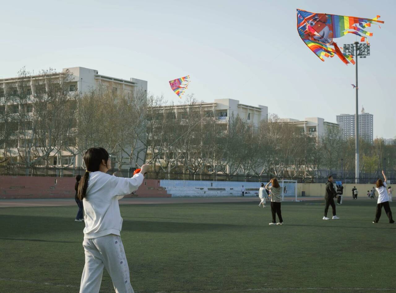 本次活动得到了我院师生的积极响应,大家踊跃报名参与其中,有序领取风筝,随后自行组队,相互合作组装和放飞风筝。操场上热闹非凡,大家三五成群,在多次尝试后逐渐掌握了放飞风筝的技巧,只见他们顺风而行,托举、放线、助跑、加速、抽线,形式多样的风筝便从同学们的手中陆续起飞,一只只风筝在空中起舞,时而翻飞、时而盘旋,轻盈而自由,没一会儿,操场上空便飞满了各式各样的风筝,五颜六色、形状各异,构成了一幅绚丽的春景图。活动过程中,师生们也互相交流着放风筝的技巧,他们手持风筝线,或奔跑,或欢笑,共享这份春日的欢乐和自由,现场氛围温馨而和谐,此次放风筝活动在师生们的欢声笑语中圆满结束。